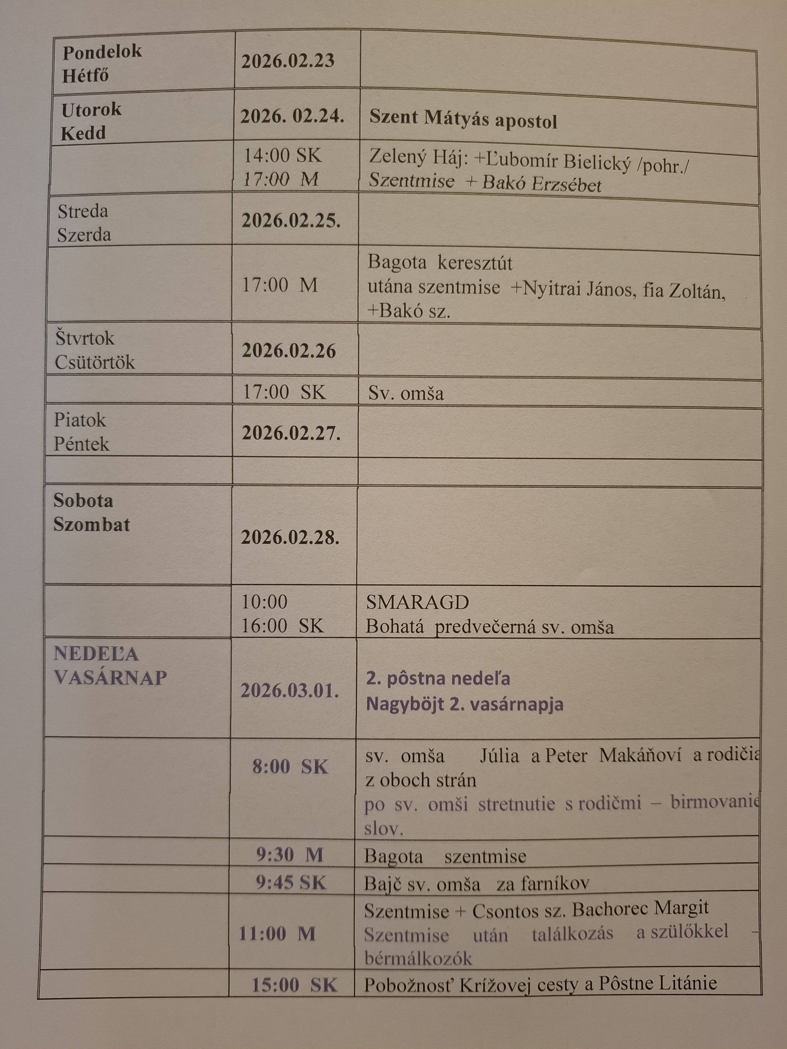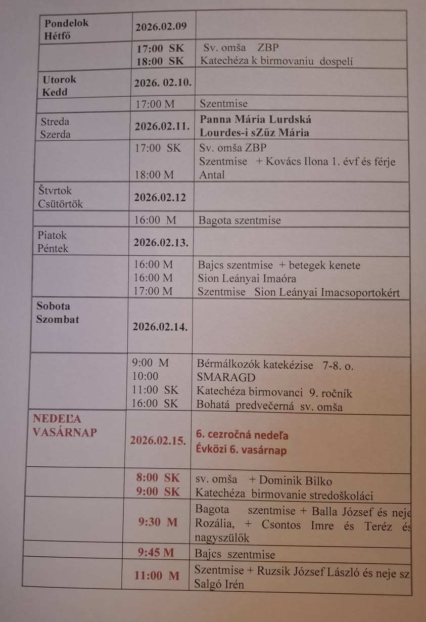 Publikované 02. 02. 2026Oznamy po 4. nedeli v cezročnom období Oznamy po 4. nedeli v cezročnom období